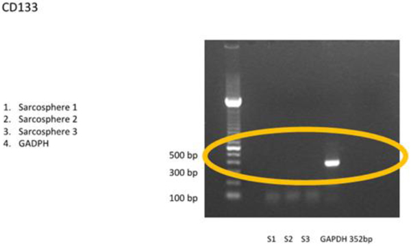 Fig. (4B). Osteosarcoma CSCs RT-PCR result using CD 133. RT-PCR demonstrated no expressionof CD 133 marker. |